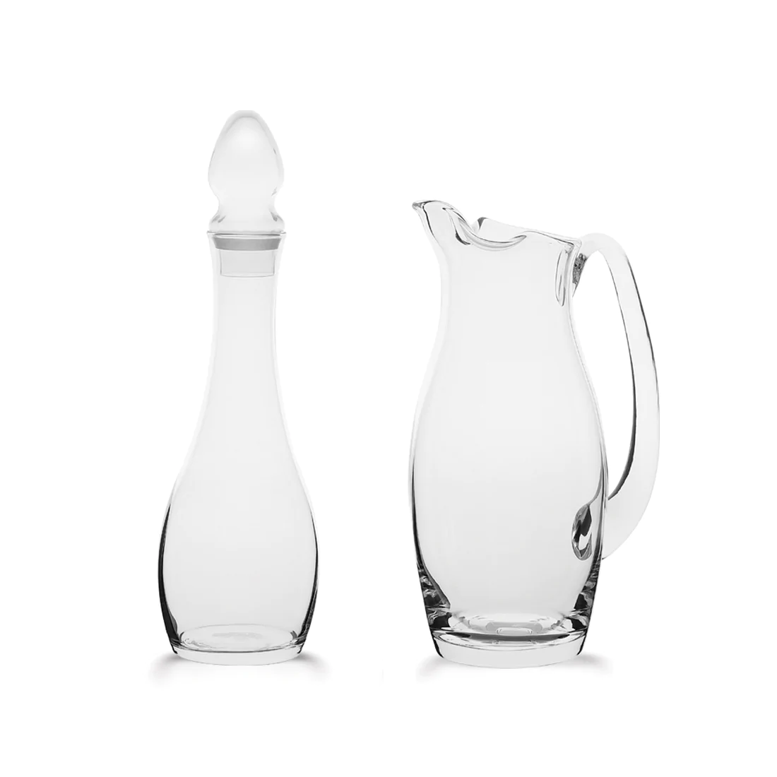 Servizio Bicchieri 50 pezzi composto da: 12 Calici Flute; 12 Calici Acqua; 12 Calici Vino; 12 Calici Liquore; 1 Brocca; 1 Bottiglia. Lavorazione: Marchio a Fuoco