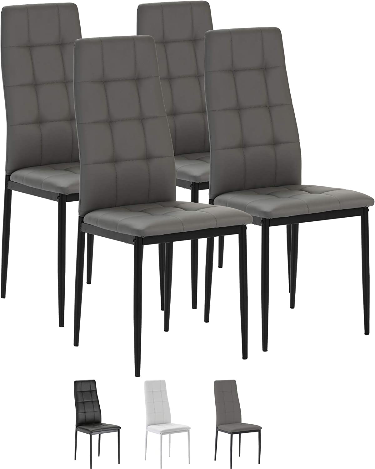 Set di 4 sedie da Pranzo Chelsea rivestite in Tela Nera, Certificazione SGS, 42 cm (Larghezza) x 51 cm (profonditá) x 97 cm (Altezza)