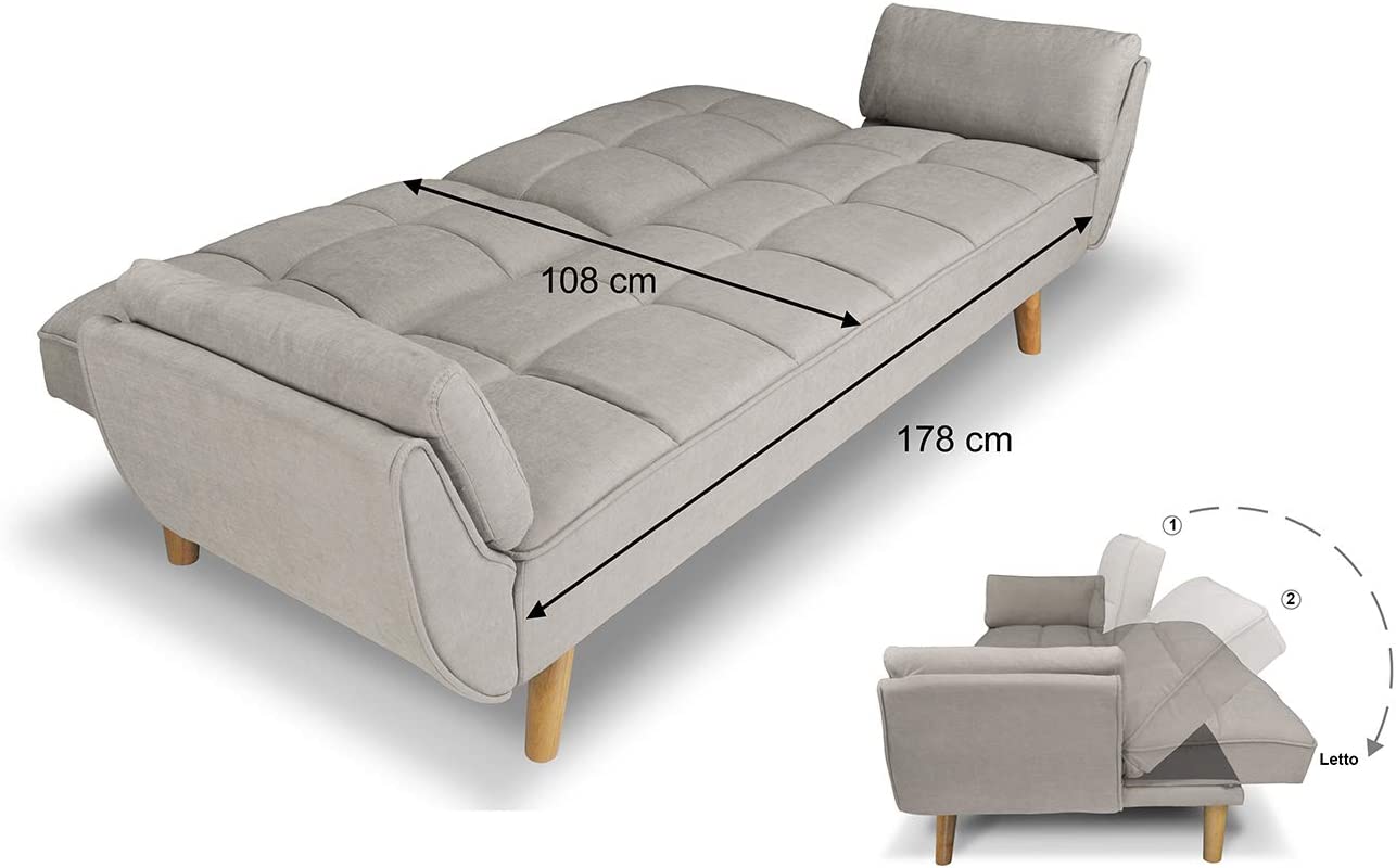 Marchio SAMIRA - Stile Classico - Tipo Divano letto Numero di posti 3 - Dimensioni di ingombro: 214 x 90 x 86(h) cm - Seduta: 54 cm, Schienale: 44 cm - Dimensioni letto: 108 x 178 cm