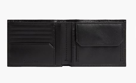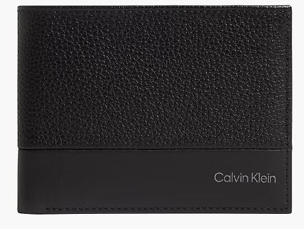 Misto in ecopelle liscia e martellata - 5 scomparti per le carte, scomparto per banconote e taschino portamonete - A: 9,5 cm L: 12 cm l: 2,8 cm - Logo Calvin Klein stampato sul davanti