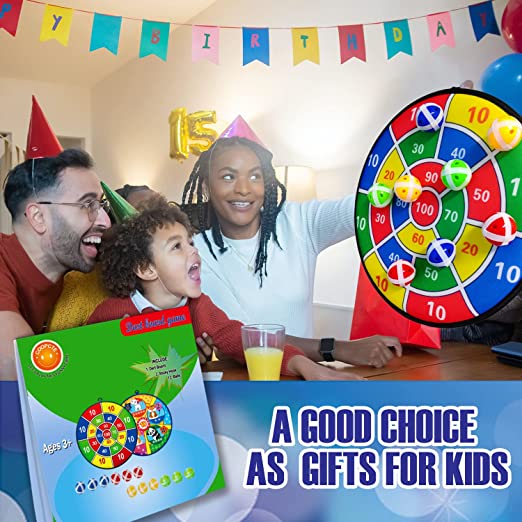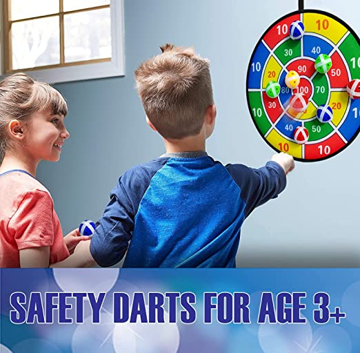 DART BOARD A DOPPIA FACCIA CON 12 PALLINE ADESIVE -- Il materiale di ottima qualità assicura che le palline appiccicose non rimbalzino offrendo così un'esperienza perfetta. Le palline adesive di plastica hanno una forte viscosità. Il pacchetto include: tavola double-face, 12 palline adesive (4 colori), 2 ganci. Tutte le palline appiccicose non hanno parti taglienti. Non adatto a bambini piccoli per pericolo di soffocamento