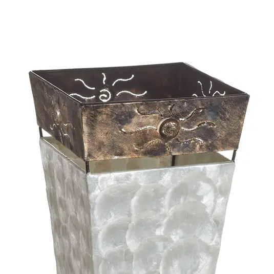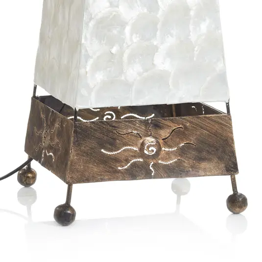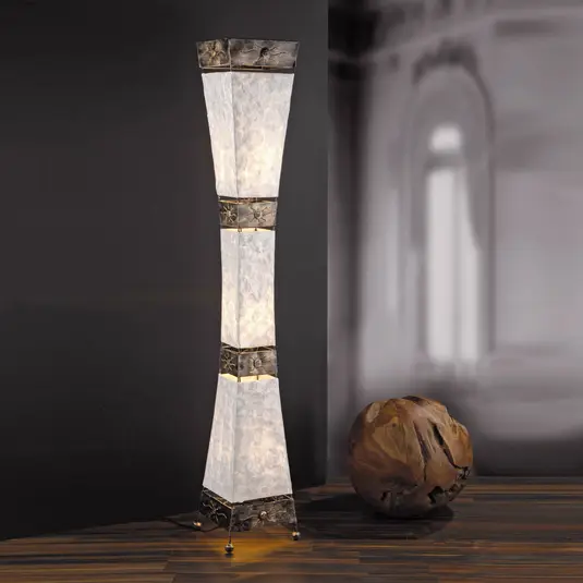 Delicata lampada da terra ABUJA - La lampada da terra ABUJA di linea conica simboleggia un design africano in veste moderna. Piace per la sua armoniosa eleganza, sottolineata anche dal contrasto di colori. Il paralume chiaro lascia filtrare una luce morbida che assicura un'atmosfera accogliente. La lampada da terra è costruita a mano e funziona anche con lampadine a risparmio. Dotata di interruttore nel cavo. Il cavo di alimentazione è lungo 2 m. Marchio Paul Neuhaus - Materiale metallo, madreperla - Colore marrone scuro, crema - Attacco E27 Lampadina 3 x 40 W - Lunghezza (in cm) 23 - Larghezza (in cm) 23 - Altezza (in cm) 150 - Tensione di esercizio Volt 230 - Tensione di alimentazione iVolt 230 - Tipo di protezione IP20 - Classe di protezione II