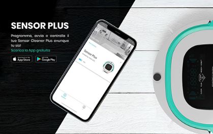 Il nuovo Sensor Cleaner Plus introduce straordinarie novità rispetto alla versione precedente. Le caratteristica principali del nuovo robot sono il sistema di navigazione intelligente Gyro Mapping System, un miglioramento nel sistema di pulizia e nell’efficienza dei programmi di lavoro e in una straordinaria App che consente di programmare il robot e e verificare il lavoro svolto. Sensor Cleaner Plus grazie alla batteria al litio è instancabile. Sensor Cleaner Plus è adatto ad ogni superficie e grazie alle due spazzole laterali viene agevolata l’aspirazione dello sporco dalla bocchetta centrale. Il kit include nella dotazione una turbo spazzola, specifica per pulire pavimento come legno, ceramica, gres, e un kit di aspirazione ideale per la pulizia di tappeti e moquette. Programma e modalità di aspirazione si adattano in automatico a seconda del kit di aspirazione che viene applicato al robot.Il robot è dotato di un filtro principale che cattura i residui più grandi di sporco mentre il secondo filtro HEPAtrattiene le particelle di polvere più sottili garantendo così la purificazione dell’aria e una qualità di pulizia imbattibile. Sensor Cleaner Plus è dotato della funzione lavaggio: è sufficiente applicare il serbatoio detergente, fornito in dotazione con il prodotto, applicare il panno in microfibra e avviare il programma dedicato. Il panno è composto da due parti: una viene inumidita nella prima fase di lavaggio e una che rimuove i residui di sporco più intensi asciugando la superficie appena detersa. Il nuovo Sensor Cleaner Plus unisce alla straordinaria potenza di aspirazione 4 differenti modalità di pulizia adatte sia per la funzione di aspirazione che per quella di lavaggio: In questa modalità il robot aspira lava pavimenti valuta la l’ampiezza dell’area di lavoro, il grado di sporco e gestisce in maniera autonoma le modalità di aspirazione e lavaggio; Questa modalità di lavoro prevede che il robot descriva una traiettoria circolare partendo dal centro della stanza. Questo programma è indicato per superfici molto ampie; Con questo programma il Sensor Cleaner Plus segue il perimetro dell’area di lavoro per aspirare o lavare; La modalità di pulizia a Zig-Zag è indicata per ambienti ampi e con pochi ostacoli. Questa modalità garantisce la massima efficienza di lavoro e di risultato.