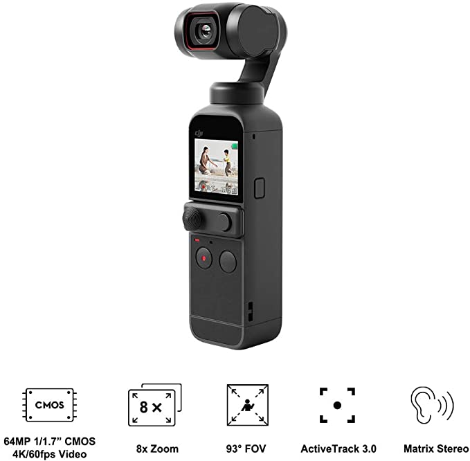 DJI Pocket 2 - Fotocamera Stabilizzata 3 Assi, Vlog, Video Ultra HD, Foto ad Alta Risoluzione da 64 MP, 1/1.7” CMOS, HDR, Riduzione del Rumore, Timelapse, Slow Motion, Zoom 8x, Livestreaming.