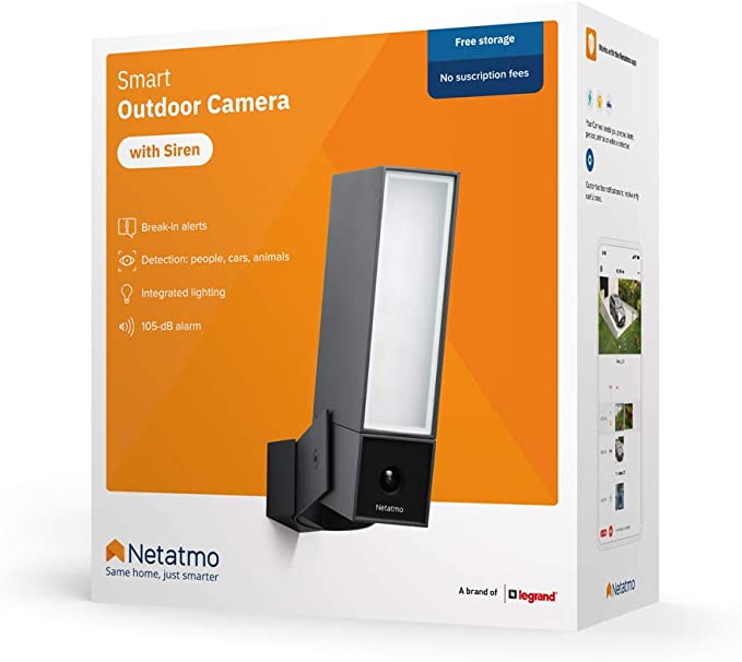 Netatmo Telecamera WIFI Esterna Intelligente con Sirena da 105 dB, Luce Integrata, Sensore di Movimento, Visione Notturna. Notifica in tempo reale in caso di rilevamento di una persona o di un veicolo sconosciuto nella tua proprietà grazie a un potente allarme da 105 dB integrato alla Videocamera - La funzione Alert-Zones, definisci le zone da sorvegliare e il tipo di intrusione per il quale desideri essere avvisato - Illumina di notte la strada o il vialetto di casa tua - Accesso a tutte le funzionalità, aggiornamenti e memorizzazione gratuiti - I tuoi dati vengono memorizzati e messi al sicuro localmente sulla scheda microSD inclusa - Accedi alle immagini HD in streaming o in diretta della tua videocamera 7 giorni su 7, 24 ore su 24, anche di notte grazie alla visione notturna