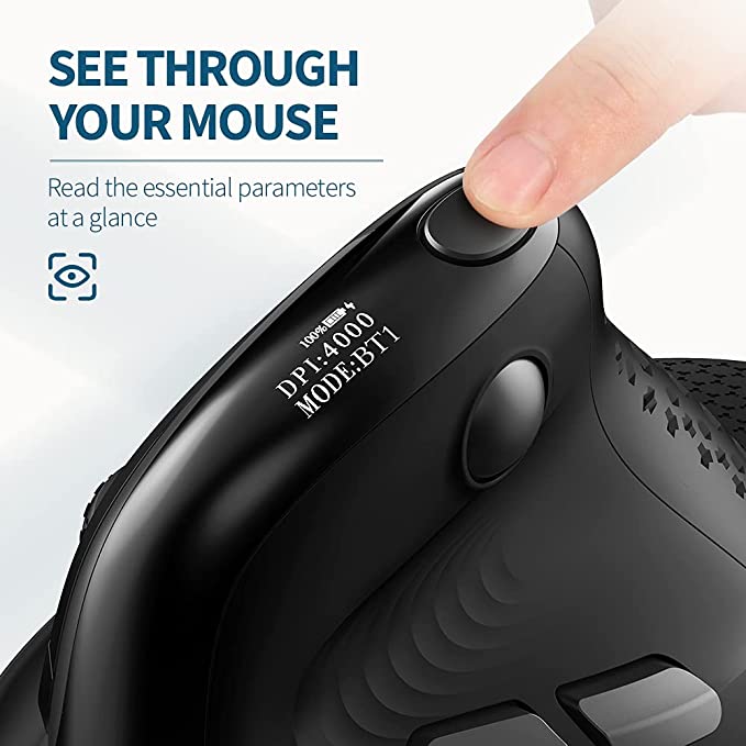 DeLux Seeker Mouse Verticale Senza Fili - Mouse Ergonomico, 6 Pulsanti Programmabili - 2.4G+ Bluetooth Doppio Canale, Ricaricabile, Illuminazione LED - Poggiapolsi - Per Windows/Mac OS
