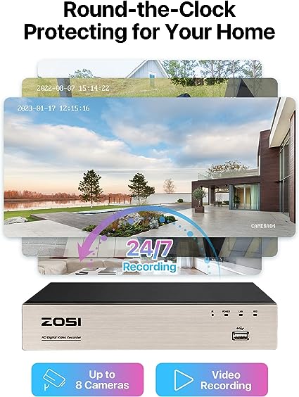 HD qualità dell' immagine: 2.0 MP 1920 X 1080p telecamere esterna; 3.6 mm lente fissa per visione grandangolare. 24 LED IR e IR Cut offrono i tag video e chiari scatti e di notte. Installazione semplice tramite codice QR. Alloggiamento resistente alle intemperie per interni ed esterni.- Dotato di connettore per uscita video, supporta HDMI/VGA 4 CH DVR AHD/TVI/ingresso video CVBS. Rilevamento movimento consente di registrare video solo se viene rilevato un movimento, permettendo di risparmiare lo spazio di memorizzazione della disco senza mancanza importanti eventi possono.Al buio si attivano automaticamente i LED infrarossi e garantiscono visibilità ottimale e distanza di visione notturna fino a 65 piedi/20 m