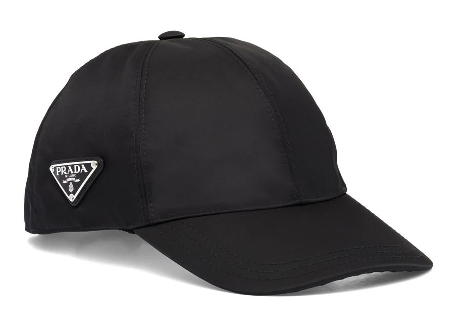 Conscious Prada - Cappello da baseball - Cuciture tono su tono, chiusura posteriore a strappo e tesa piatta. Colore: nero. Composizione Fodera: Cotone 100% - Esterno: Pelle Di Vitello 100%, Nylon Riciclato 100% - Istruzioni per il lavaggio Lavare solo a secco
