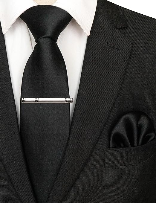 Lunghezza cravatta:152cm;Larghezza cravatta:8cm;Dimensione fazzoletto:23cm×23cm;Lunghezza fermacravatta:6.1cm. - raso - Classico - GARANZIA DI ALTA QUALITÀ: 1200 punti di cucitura precisa rende la cravatta spessa ed elastica, facile da fare bei nodi. Nota: Ci possono essere alcune pieghe dopo l'imballaggio, che possono essere facilmente rimosse con un ferro da stiro a vapore.