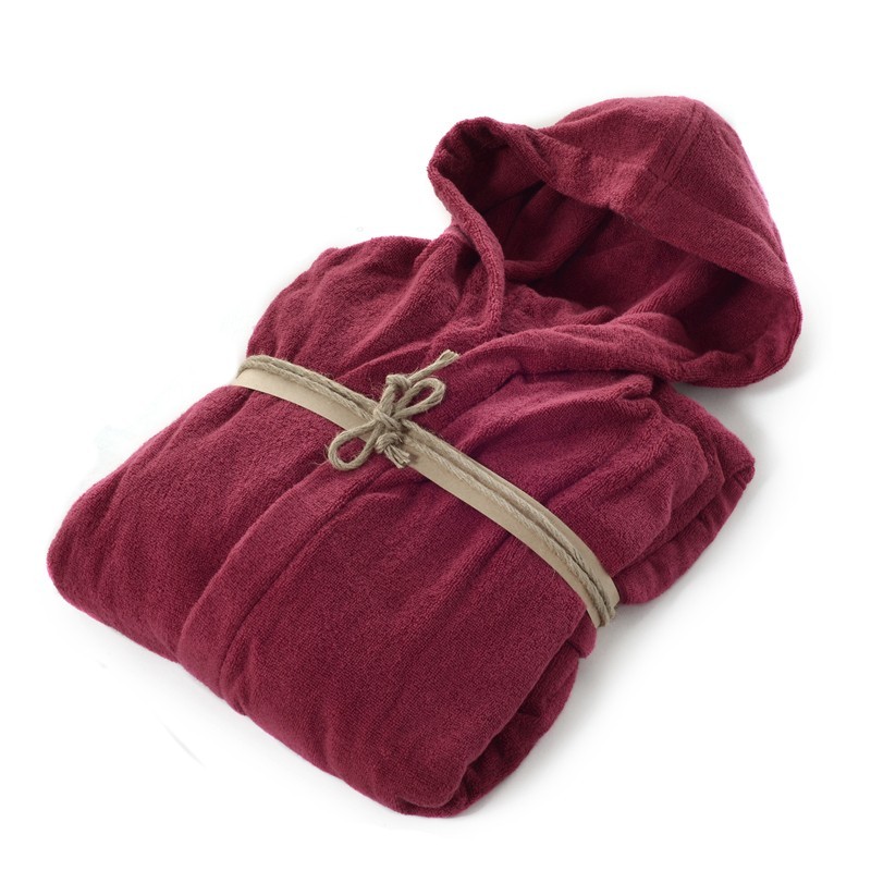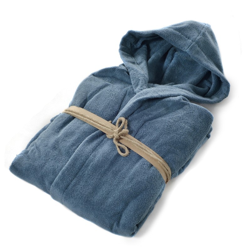 Accappatoio con cappuccio di 350 gr/mq in Microcotone Zero Twist, filato a bassissima torsione che permette all'aria di raggiungere le parti interne del filato, diminuendo il tempo necessario per l'asciugatura e dona al capo una morbidezza eccezionale.