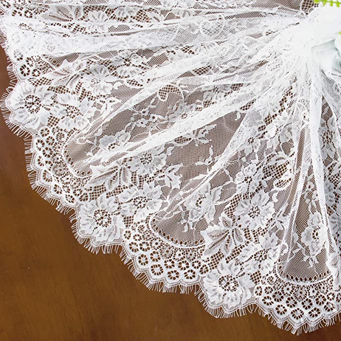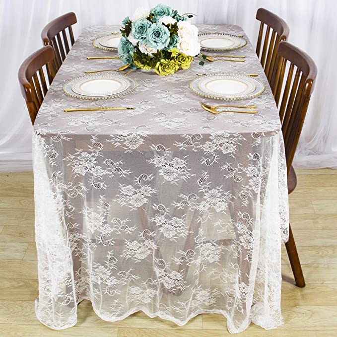 Tovaglia in tessuto di pizzo bianco con fiori ricamati - Vintage.- 152,4 cm di larghezza x 304,8 cm di lunghezza, rettangolare