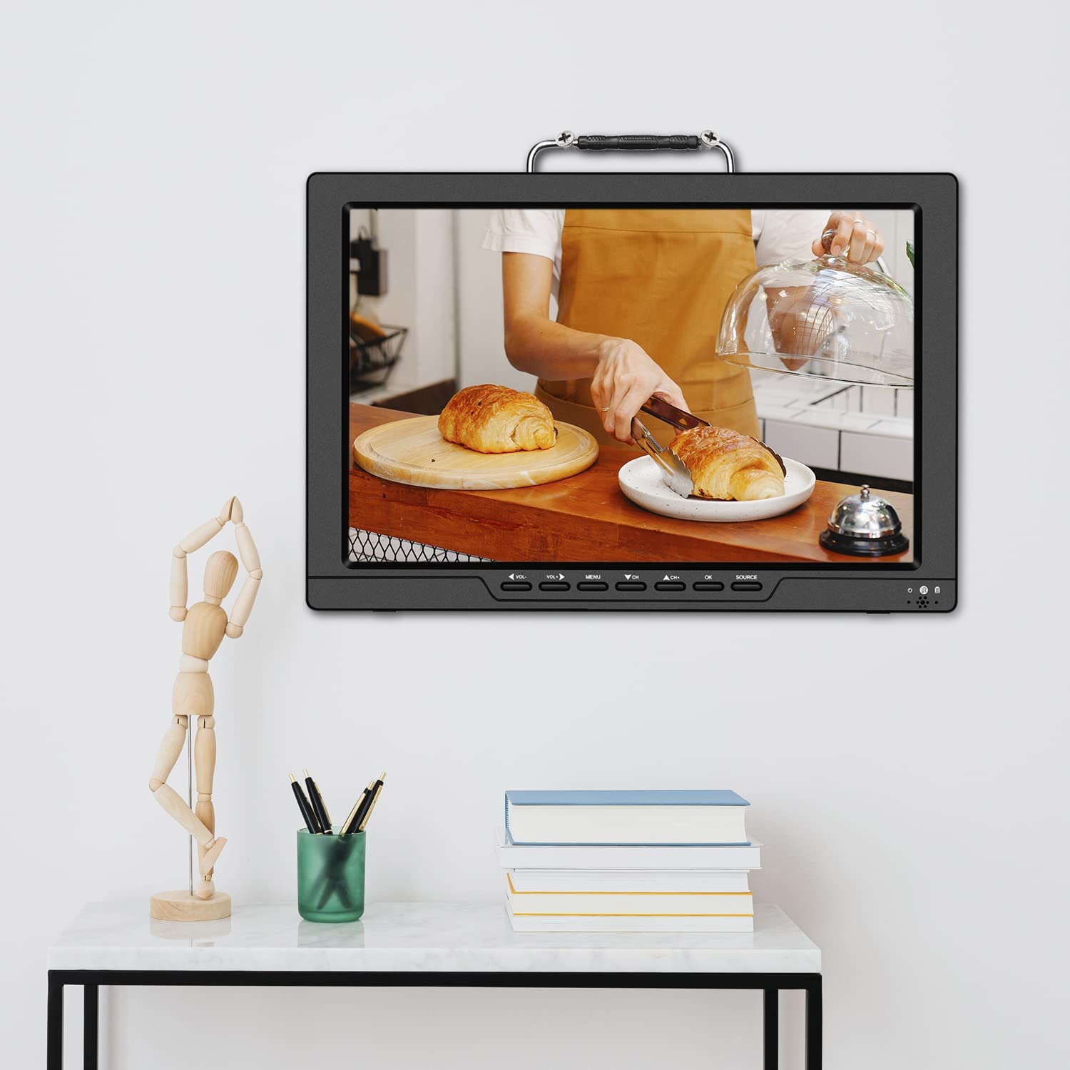 TV portatile, TV DVB-T2 a batteria ricaricabile LCD da 13,3 pollici con Freeview, presa USB, jack per cuffie, telecomando, ingresso AV, HDMI-IN + adattatore da parete. Il sintonizzatore TV digitale DVB-T2 incorporato riceve le stazioni TV HD gratuite via etere - Godetevi le trasmissioni TV su uno schermo LCD da 13,3