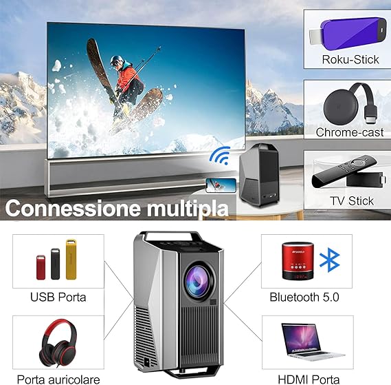 Proiettore Wifi Bluetooth, 20000 lumen Full Hd