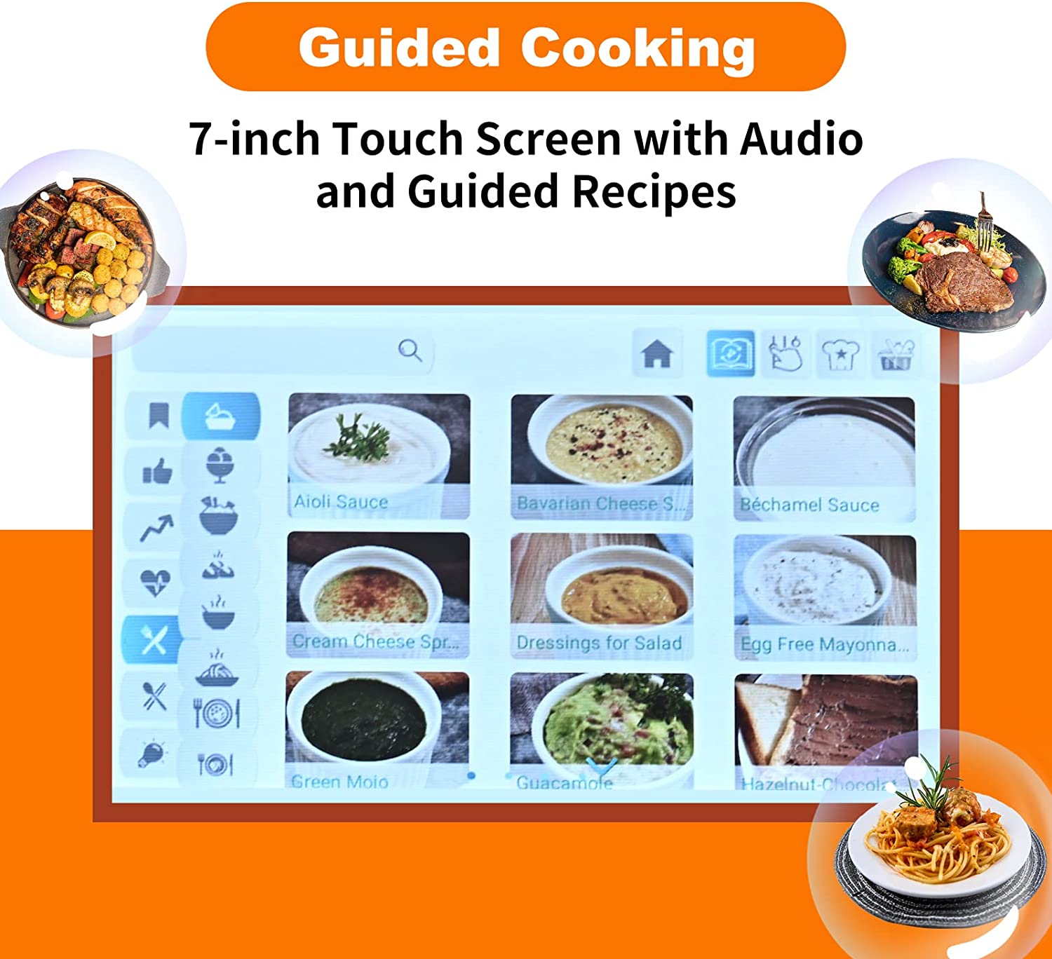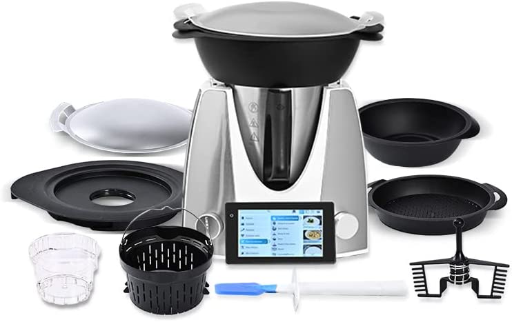 NewKern KE-7001 con Ricette Guidate Integrate, Robot da Cucina Multifunzione, 1800W, 4L, 12 Programmi Automatici e Modalità Manuale. MOTORE AD ALTE PRESTAZIONI: Integrato con un potente motore Switch Reluctance che mantiene la velocità di miscelazione anche con carichi pesanti, può impastare 1KG di pasta di pane in soli 3 minuti. Questo motore durevole consente alla lama di girare a una velocità compresa tra 50 e 11000 giri / min, permettendole di passare dalla direzione di miscelazione avanti e indietro. RICETTE GUIDATE: 175 ricette preinstallate visualizzate sul touch screen da 7 pollici, con connessione WIFI per aggiornamento continuo. Le ricette passo passo con audioguida sono disponibili in inglese, francese, tedesco, italiano, spagnolo. MULTIFUNZIONALE: sostituisce più elettrodomestici da cucina con 12 modalità di cottura automatiche tra cui impastare, emulsionare, soffriggere, stufare, macinare, tritare, fermentazione, cuocere a vapore, bollitore, sous vide (fino a 24 ore), riscaldamento ad alta velocità e autopulente . Puoi anche creare il tuo piatto utilizzando la modalità manuale. La temperatura può essere impostata da 40-120 °C, velocità di miscelazione da 50-11000 giri/min (Coppia massima: 2Nm). ROBUSTA E SICURA: La costruzione stabile della macchina con ventose antiscivolo alla base evita che la macchina si muova durante la lavorazione. Il sistema di sicurezza assicura che ogni volta che il coperchio viene rimosso, il funzionamento venga interrotto. COMPRENDE TUTTI GLI ACCESSORI: Il set completo include un vasetto, una lama facile da montare, una spatola, un cestello per cuocere a fuoco lento, un agitatore a farfalla e un set per la cottura a vapore a due livelli con coperchio.