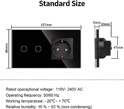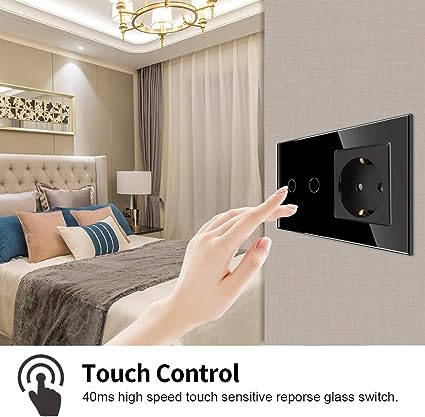 Combinazione di presa dell'interruttore - 16 A + interruttore della luce Smart Touch. Interruttore touch in vetro ad alta velocità sensibile al tocco. e supporta la maggior parte degli elettrodomestici, certificato CE/RoHS. Presa standard: questa presa di qualità domestica dispone di una potenza nominale elettrica massima di 250 VAC/16 A e supporta la maggior parte degli elettrodomestici, certificato CE/RoHS. Controllo ovunque e vocale: controllate la vostra luce da qualsiasi luogo con Internet in qualsiasi momento tramite Smart Switch. Funziona con Alexa e Google Assistant. È possibile dare semplici comandi vocali per accendere e spegnere i dispositivi collegati allo Smart Touch. Pianificazione del timer: imposta orari o conto alla rovescia per automatizzare l'illuminazione della tua casa in base alle tue routine quotidiane. L'interruttore della luce Wi-Fi con timer elimina la tua preoccupazione di dimenticare di spegnere i dispositivi. Inoltre, è possibile impostare i tempi di illuminazione per confondere i malintenzionati.