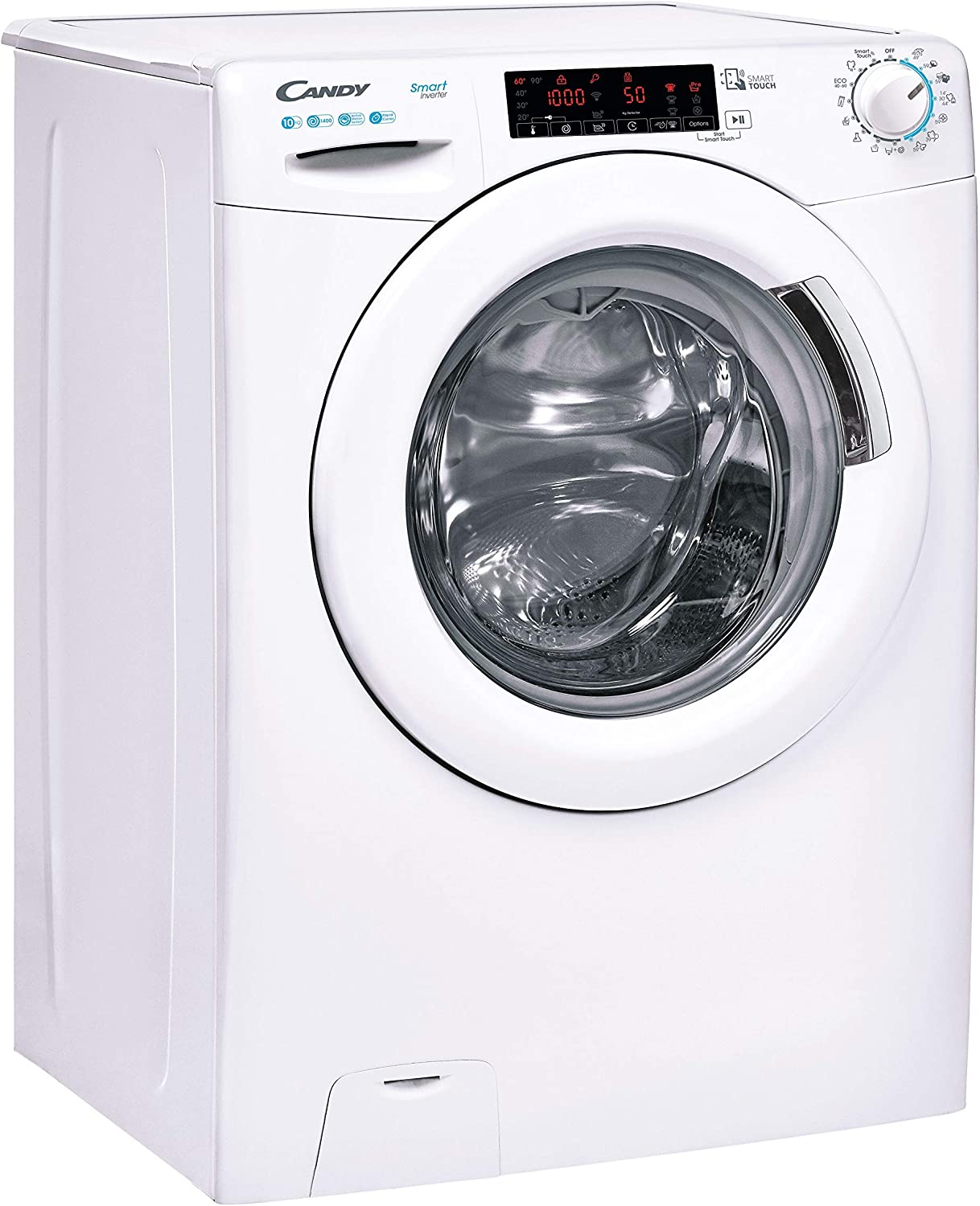 Candy Smart CS - Lavatrice a Carica Frontale, 10 Kg, 1400 Giri, Connettività NFC, Libera Installazione, 60x58x85 cm, Bianco, Classe A [Classe di efficienza energetica A]. CONNETTIVITÀ NFC: collega la Lavatrice Smart Candy al tuo smartphone, scarica l'app Candy Simply-Fi e aggiungi programmi di lavaggio e funzionalità extra - CICLI RAPIDI: per te che sei sempre di corsa, Candy ha pensato a diversi programmi di lavaggio, dai 14 ai 59 minuti, che si adatteranno a ogni tua esigenza - TECNOLOGIA ACTIVE MOTION: prenditi cura dei capi che ami grazie alla tecnologia Candy Active Motion che potenzia l'azione pulente del detersivo e migliora i risultati di lavaggio della tua Lavatrice 10 kg a Carica Frontale PARTENZA RITARDATA: non lasciare che il tuo bucato stia ore ad aspettarti ma programma l'avvio della Lavatrice a Carica Frontale con un ritardo di 24 ore - MOTORE SILENT INVERTER: mai fastidiosi rumori durante il lavaggio e la centrifuga; I motori BPM rendono le Lavatrici Candy silenziose, durevoli ed efficienti. Dimensioni 58 x 60 x 85 cm; 65 Kg