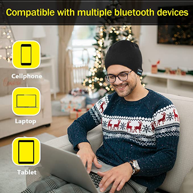 Berretto Bluetooth 5.0 Musica, Cuffie Stereo e Microfono Vivavoce. BLUETOOTH 5.0 : il beanie Bluetooth wireless COTOP adotta la tecnologia Bluetooth 5.0 avanzata che funziona meglio del tipo Bluetooth 4.2, offrendo 10 ~ 12 ore di riproduzione, portata wireless da 33 piedi a 65 piedi. I cappelli Bluetooth COTOP con cuffie si collegano facilmente a tutti i dispositivi di riproduzione multimediale abilitati Bluetooth. Realizzato in morbido pile al 100%, mantiene la testa super calda e ti consente di ascoltare la musica senza dover indossare ulteriori cuffie. Il microfono HD incorporato con cappelli Bluetooth con eco e funzione di eliminazione del rumore garantisce un suono cristallino