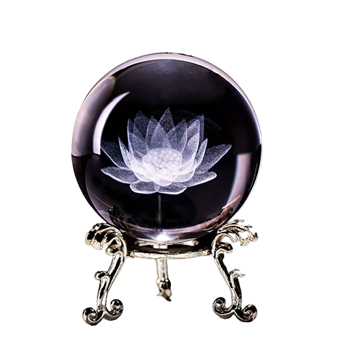 Sfera di Cristallo con Fiore inciso al Laser