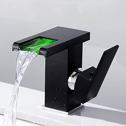 Rubinetto bagno a Cascata con Miscelatore LED Monocomando - Il colore cambia RGB con la temperatura e garantire la sicurezza per i bambini. NON HA BISOGNO BATTERIA : È alimentato da solo dal flusso d'acqua.Non ha bisogno di una fonte di alimentazione di alcun tipo, non richiede una batteria esterna. ACCESSORI AVANZATI : Ha una maniglia a leva laterale, una cartuccia a dischi ceramici per una lunga durata e un beccuccio aperto a cascata. Tutta la base del dado di montaggio in rame è più solida - ALTA QUALITA : Materiale ottone cromato lucido. Ben rifinito nei dettagli e robusto, tale da assicurarne la durata nel tempo. Inclusi tubi e raccordi intrecciati in acciaio inossidabile. Dimensioni 11 x 17 x 24 cm; 1.72 Kg