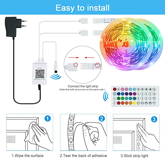 Lxyoung Striscia Led 5 Metri, Smart - Con 44 Tasti - Telecomando IR, Luci LED Colorate - APP - Sincronizzabile con la musica - Le strisce luminose a led supportano sia l'app Apollo che il telecomando a 44 tasti per il controllo, che ti consentono di cambiare il colore delle luci a led: puoi scegliere liberamente di controllare 16 milioni di colori - La striscia LED è a basse emissioni di carbonio, priva di radiazioni e non inquina.