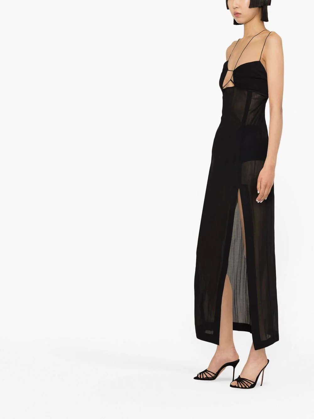 Nensi Dojaka: Abito midi asimmetrico semi trasparente - Nero, cotone, design semi trasparente, design asimmetrico, chiusura posteriore con zip, dettaglio con fasce incrociate, spalline fini regolabili, senza maniche, spacco laterale e lunghezza alla caviglia. Cotone 100%- Lavare a mano - Altezza modella: 1,78 m. Taglia indossata: S.