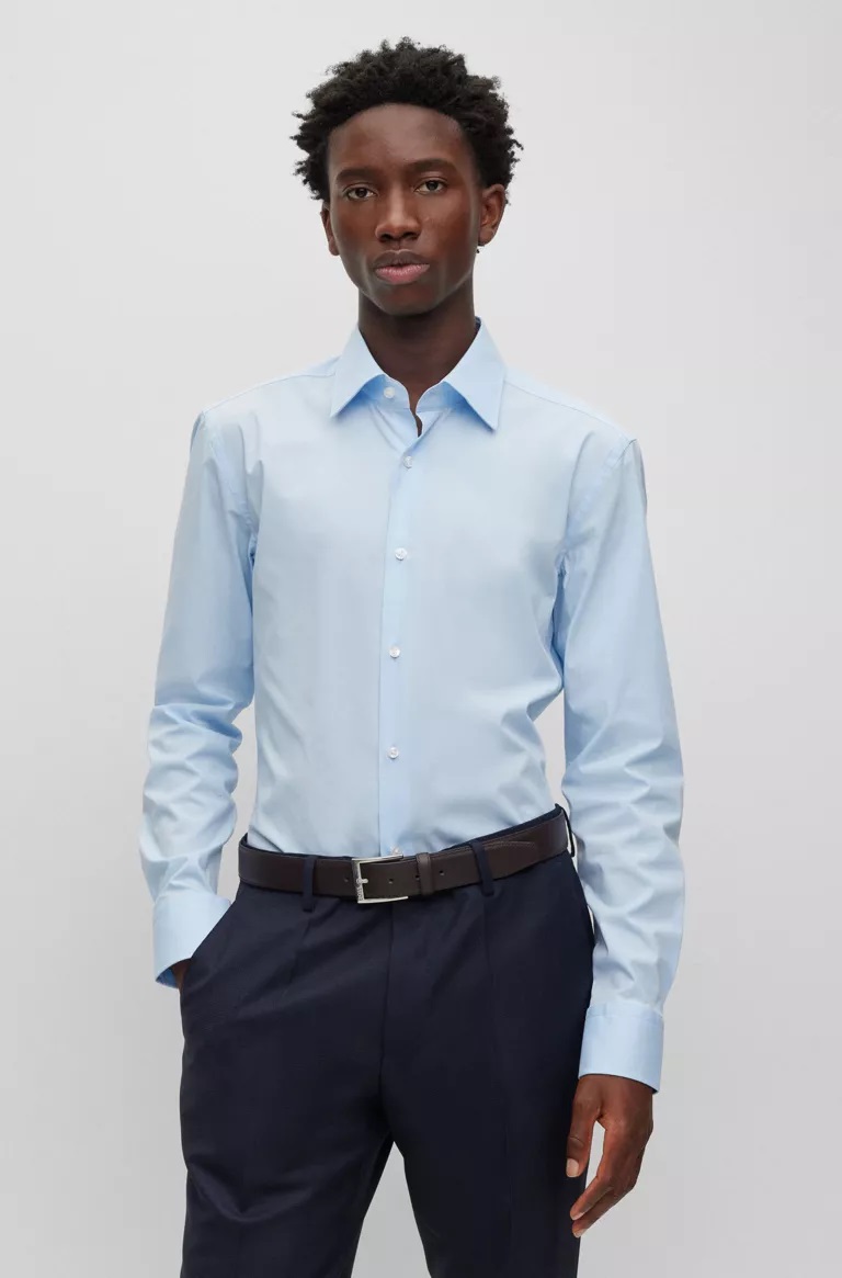CAMICIA SLIM FIT IN POPELINE DI COTONE ELASTICIZZATO - SLIM FIT - Una camicia business dallo stile intramontabile BOSS Uomo con vestibilità definita. Colletto stile Kent - Polsini rotondi