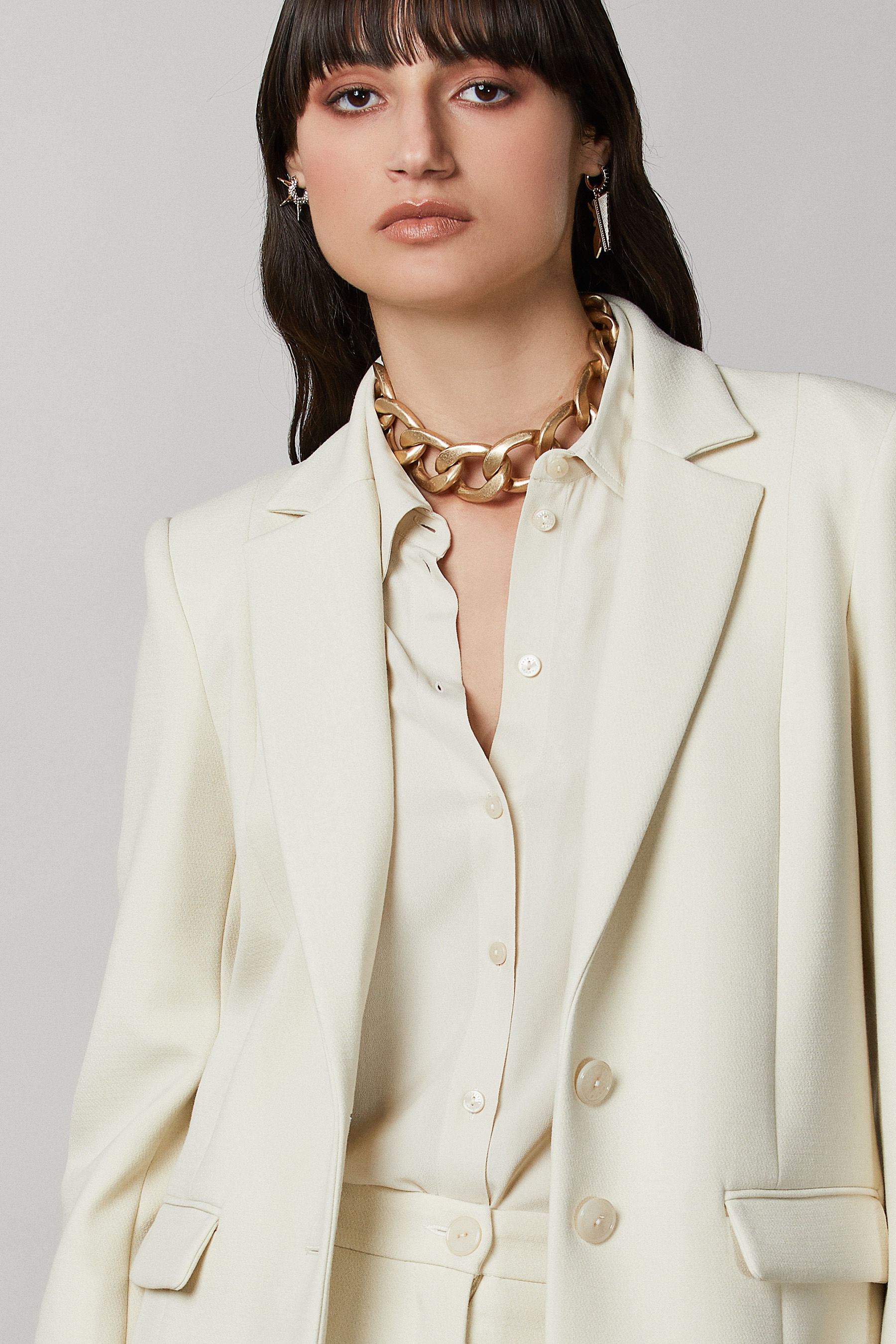 Giacca taglio maschile 2 bottoni - Giacca a due bottoni dal taglio maschile e dal fit dritto. Protagonista dei look di stagione, si indossa aperta su top colorati o su pizzo, per un contrasto di genere dal sapore rock chic. Armaturato misto viscosa - Vestibilità maschile - Fodera in georgette - La modella è alta 1,76 cm e indossa la taglia IT 40
