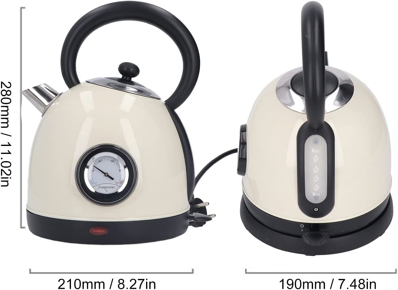 Bollitore Elettrico con Sfera di Protezione per Ebollizione Rapida da 1,8 L con Termometro e con Base Girevole a 360° - Quando l'acqua raggiunge la temperatura di ebollizione o se non c'è acqua all'interno, il sistema di protezione dry boil interrompe automaticamente l'alimentazione per garantire sicurezza e consumo energetico.1