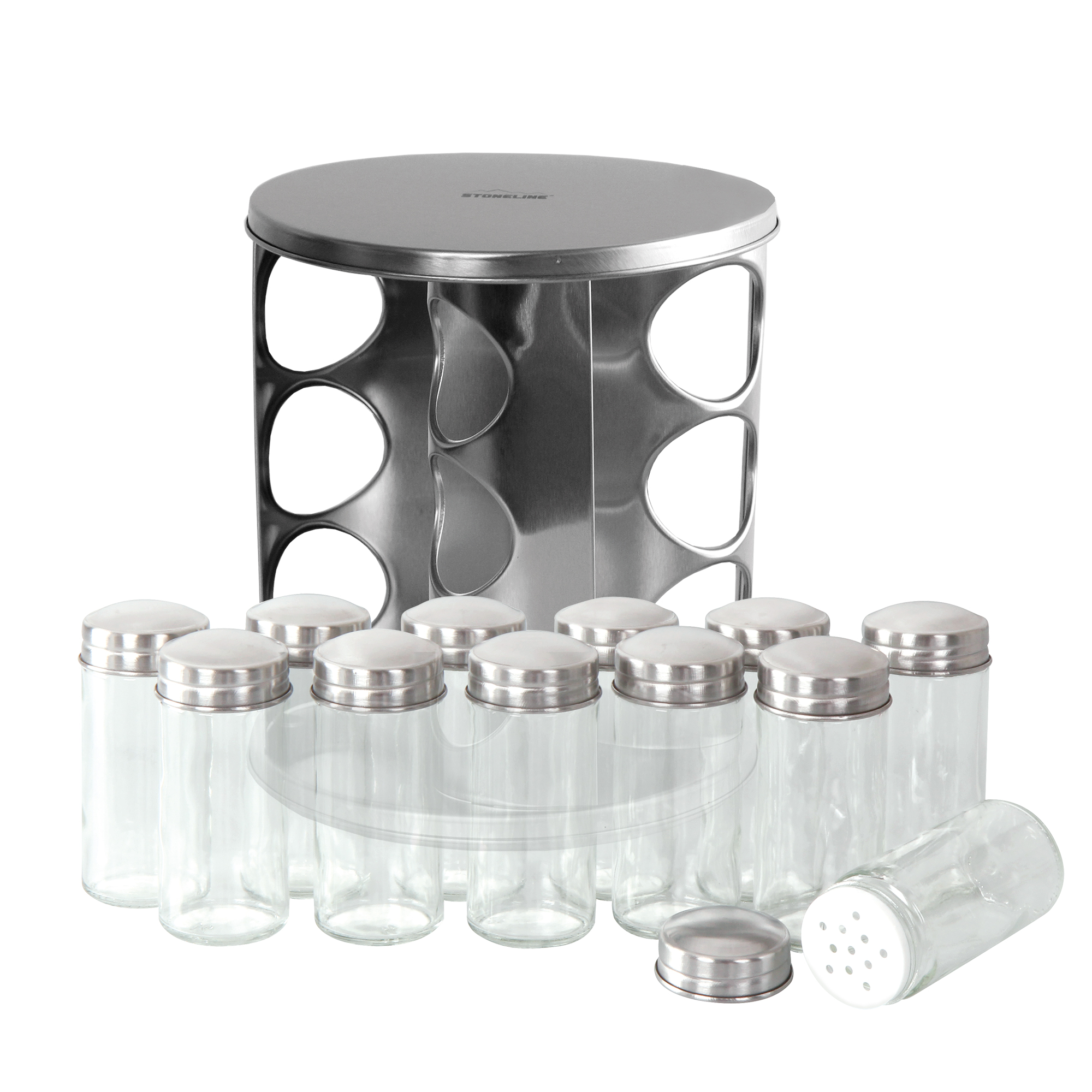 Con lo scaffale per spezie della STONELINE potete riporre le spezie in modo pratico e risparmiando spazio. Anche se la cucina è piccola, le 12 boccette di vetro saranno sempre a portata di mano. Lo scaffale è in acciaio inossidabile, i contenitori consentono un dosaggio facile e preciso. Nella confezione sono comprese anche le etichette adesive su cui scrivere il nome delle spezie e da attaccare sui dosatori – in modo da non confonderli. Il set è composto da: 1 scaffale per spezie, diametro ca. 17 cm, altezza ca. 21,5 cm - 12 dosatori per spezie, diametro ca. 4,2 cm, altezza ca. 10 cm, ca. 80 ml - 12 etichette adesive bianche, diametro ca. 2,5 cm