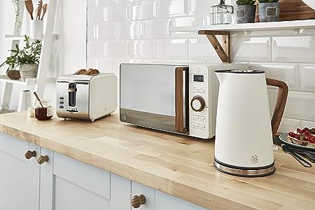 Set colazione composto da microonde digitale da 800 W con 6 livelli di potenza, tostapane 900 W per 2 fette larghe con 6 livelli di tostatura e bollitore elettrico ultra rapido wireless da 1,7 litri. Con il set per la colazione Swan in stile nordico potrete preparare una colazione completa riscaldando i vostri alimenti, preparando un tè o un infuso e tostando il vostro pane preferito con il grado di tostatura scelto godendo del semplice ed elegante design nordico che unisce stile e funzionalità. Set con un grande livello di finitura con corpo in acciaio inox lucido, lati con finitura opaca tocco