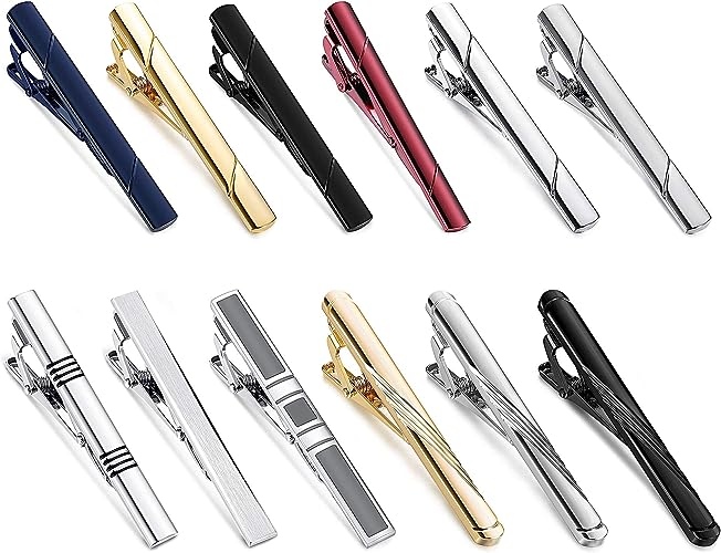 Finrezio Set di fermacravatte da Uomo, 12 Pezzi, fermacravatta Nera, per Cravatte Normali - Questo set di fermacravatte è realizzato in rame di alta qualità, senza piombo, robusto e durevole, con una maggiore durata. Alta lucidatura e superficie liscia, eccellente lavorazione elettrolitica, ritenzione del colore a lungo termine, in modo che rimangano come nuovi, anche dopo un uso continuo.