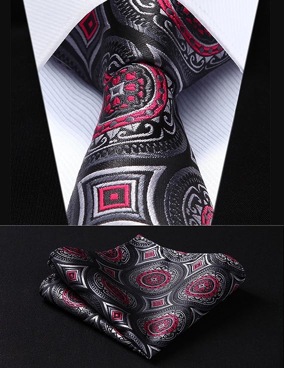 Dimensioni delle cravatte: 59 x 3,4. Dimensioni del fazzoletto tascabile: 10 x 10. Queste dimensioni standard sono adatte per l'uomo straordinario più formale indipendentemente dalla sua altezza. Seta lavorata