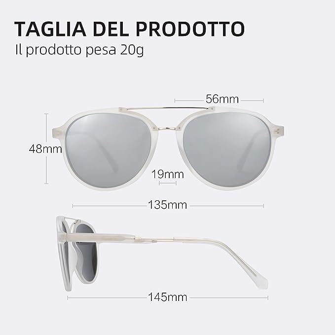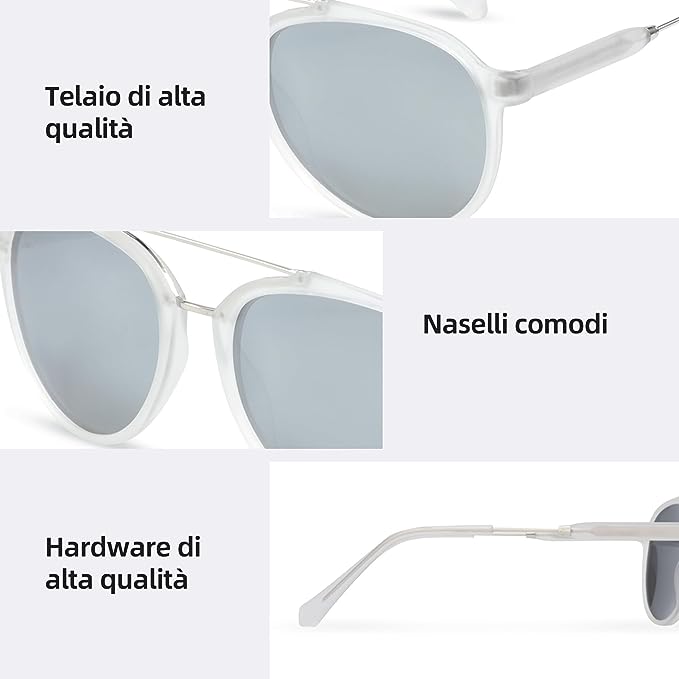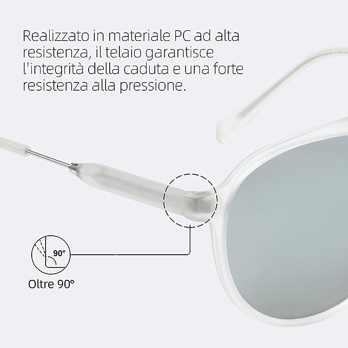 LENTI POLARIZZATE - Le lenti polarizzate con proprietà polarizzanti possono eliminare efficacemente la luce riflessa e diffusa, ecc., Bloccando i dannosi raggi UV. In questo modo, i nostri occhiali sportivi possono aiutare a prevenire l'affaticamento degli occhi in condizioni di luce intensa, migliorare la chiarezza visiva e quindi fornire ai tuoi occhi una protezione affidabile a lungo termine. PROTEZIONE UV400 - Gli occhiali da sole polarizzati possono bloccare oltre il 90% dei raggi UV e ridurre efficacemente la trasmissione della luce. La trasmittanza di UV400 o inferiore può essere limitata al 5% anche inferiore. Il telaio realizzato in materiale PC ad alta resistenza garantisce una resistenza alla caduta intatta e una forte resistenza alla compressione.