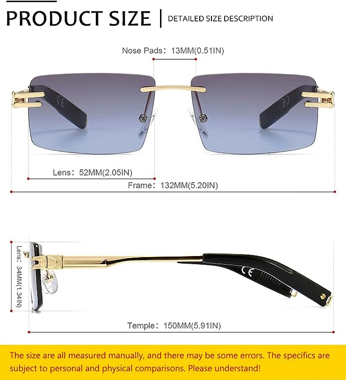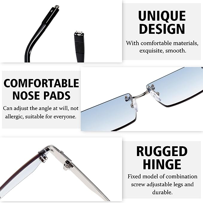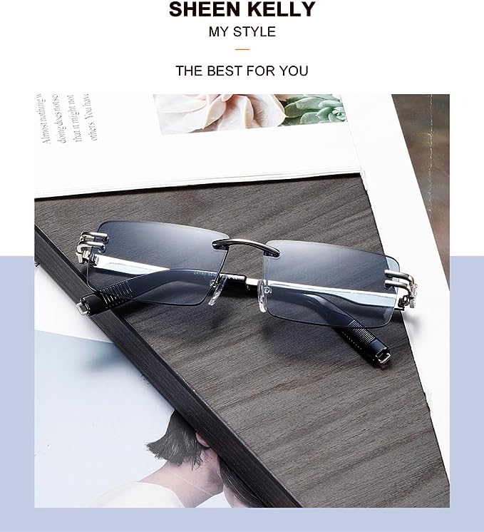 Protezione UV400 - Gli occhiali SHEEN KELLY forniscono una protezione UVA e UVB al 100% per proteggere gli occhi dai danni UV a lungo termine. Super leggero e portatile - Cornice piccola senza montatura rettangolare retrò, da indossare a lungo termine senza pressione. Combinato con aste in metallo, presenta uno stile di lusso chic chic. pesa solo 20 g. Vintage - Comodo nasello: i naselli in metallo con gel di silice riducono la pressione sul naso, comodi da indossare, senza allergie e adatti a tutti. INS Blogger e celebrità SAME STYLE - La lente gelatina multicolore in stile fashion design più all'avanguardia, un must have in quattro stagioni.