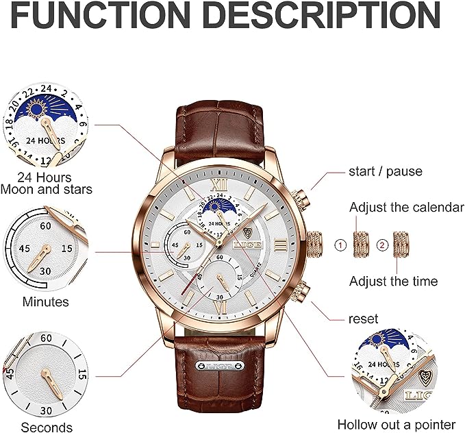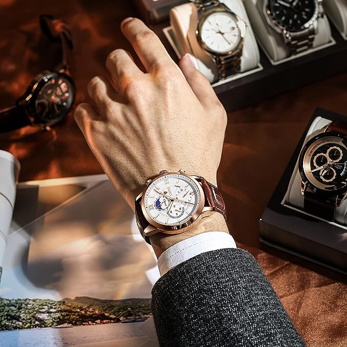 CURREN orologi da uomo Top Brand Luxury Fashion & Casual - Orologio al quarzo con data - Impermeabile - -Movimento: movimento Al Quarzo - Materiale della cassa: lega -Lunghezza banda: 23 cm -Profondità resistenza all'acqua: 3Bar -Diametro quadrante: 46mm -Larghezza banda: 22mm -Spessore cassa: 12mm -Materiale del cinturino: pelle - I 3 piccoli quadranti sono solo decorativi