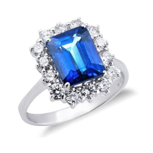 Pietre Diamanti e Zaffiro blu - Metallo Oro bianc...