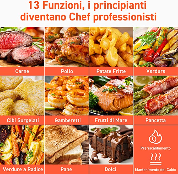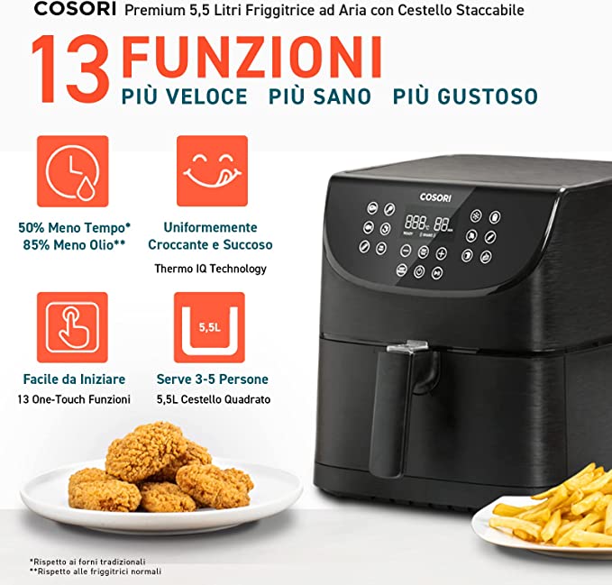 Friggitrice ad Aria XXL 5,5 Litri con 100 Ricette Italiane, Friggitrice ad Aria Calda Senza Olio con LED Display, 13 Funzioni & Promemoria Shake, Cestello Facile da Pulire, Senza PFOA, 1700W