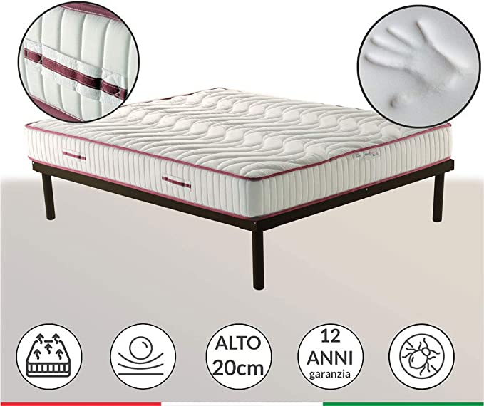 Memory Nature H20cm, materasso ORTOPEDICO, 4cm Memory + CUSCINI e tessuto resistente, anallergico. Adatto x ogni rete, Matrimoniale 160x190