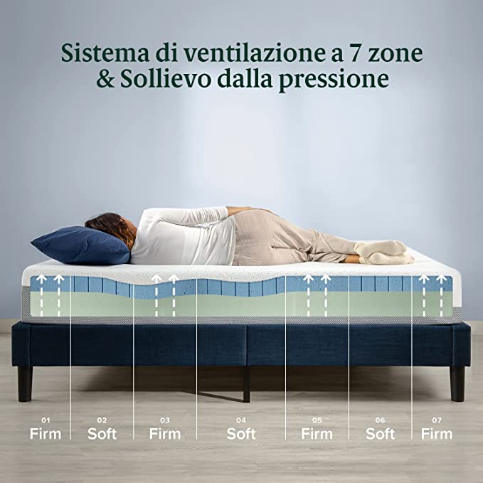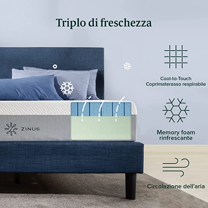 ZINUS Materasso in memory foam con gel ultra rinfrescante - Materasso adattabile a 7 zone. Altezza 20 cm | Schiuma in gel rinfrescante - Materasso arrotolabile - OEKO-TEX - ULTRA PERFORMANTE - Ottimizzato per un sonno perfettamente regolato in base alla temperatura, questo nuovo materasso è realizzato in memory foam infusa in gel e in una morbida fodera in maglia fresca al tatto, migliorata per tenerti fresco e comodo e per consentirti di beneficiare del triplo dei vantaggi di freschezza - RIVESTIMENTO FRESCO - Una morbida fodera in tessuto estensibile fresca al tatto migliora la ventilazione e offre un maggiore flusso d'aria - SONNO RINFRESCANTE - Abbiamo infuso in ogni strato tè verde di alta qualità per offrirti una migliore freschezza, dalla prima notte alla millesima - CERTIFICAZIONI OEKO-TEX – Schiuma di altissima qualità e dotata di certificazione OEKO-TEX in merito a durata, prestazioni e contenuto
