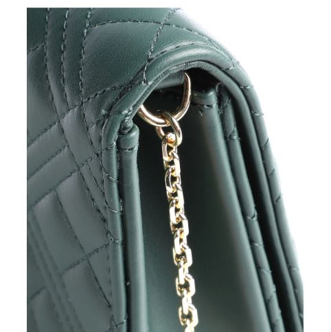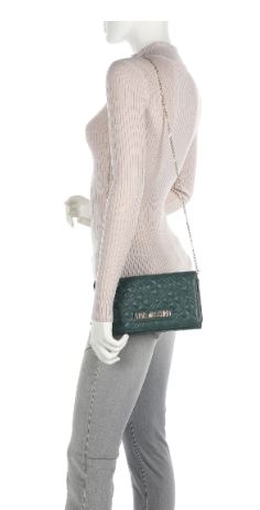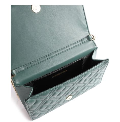 LOVE MOSCHINO - chiude con chiusura a calamita - non-rimovibile o regolabile cinghia di spalla (Lunghezza circa 110 cm) in metallo finitura oro lucido - logo Lining poliestere - uno scomparto principale - alloggiamento per schede - due tasche interne - Materiale: pelle sintetica (trapuntato) - Dimensione: ca. 23 x 14 x 6 cm (larghezza x altezza x profondità) - Peso: 0,35 kg - Colore del produttore: Verde bottiglia