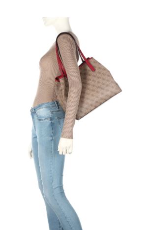 GUESS - piedini protettivi in metallo - chiude con chiusura a calamita - due manici (altezza manico 23 cm) - modellata Lining poliestere - uno scomparto principale - busta rimovibile - Materiale: pelle sintetica (logo stampato) Dimensione: ca. 33 x 27 x 15 cm (larghezza x altezza x profondità) - Peso: 0,6 kg - Colore del produttore: brown