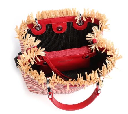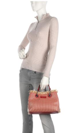 EMPORIO ARMANI - chiude con chiusura a calamita due manici amovibile (altezza manico 10 cm) removibile e regolabile cinghia di spalla (Lunghezza circa 75-130 cm) - frange - in metallo finitura argento - uno scomparto principale - busta rimovibile - Materiale: poliestere (intrecciato) - Dimensione: ca. 27 x 20 x 9 cm (larghezza x altezza x profondità) - Peso: 0,6 kg - Colore del produttore: rosso