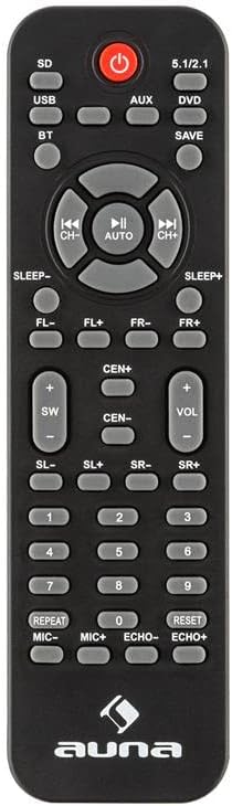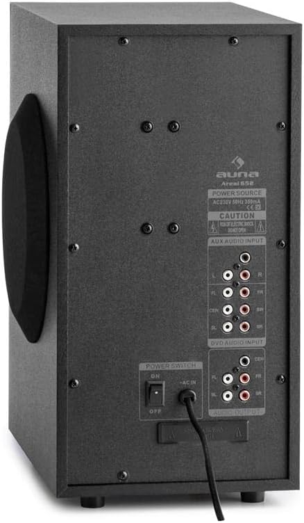 PRESTAZIONI: questo home teather wireless 5.1 si compone di un subwoofer attivo e cinque altoparlanti satellite. Il subwoofer Bass Reflex con emissione laterale insieme ai cinque altoparlanti satellite crea un suono di 15 W (per ogni satellite) e 70 W RMS di potenza. SUONO: il surround 5.1 wireless Areal 652 di AUNA consente di collegare lettori DVD e Blu-Ray. Proprio quello che serve per godersi film, musica e videogiochi con un suono nitido e di qualità. VERSATILE: é possibile riprodurre file in formato MP3 da diverse fonti esterne grazie alla presenza di ingresso USB e al lettore di schede SD; inoltre, l'ingresso AUX puó essere utilizzato, ad esempio, per collegare lettore CD, MP3 o computer. COMFORT: con il telecomando incluso si possono regolare comodamente le impostazioni e attraverso l'interfaccia Bluetooth si puó ascoltare musica senza fili, direttamente da smartphone, tablet o pc. DESIGN: la base antiscivolo e l'alloggiamento effetto nero laccato offrono un aspetto elegante. L'estetica di questo surround sound system impianto 5.1 Areal 652 di AUNA lo rende adatto a qualsiasi tipo di ambiente e decorazione.
