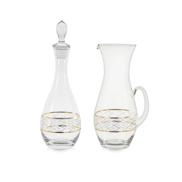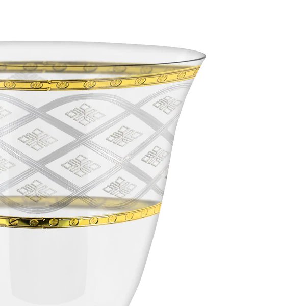 Il servizio di bicchieri Carisma Oro da 50 pezzi è una serie di calici pantografati decorati con uno stile contemporaneo e con particolari in oro. Il set di calici Carisma oro è composto da dodici flùte dai “fianchi alti e slanciati” come quelli di una fanciulla ideali per gli spumanti; dodici coppe modellate sulle forme del seno della Pompadour - appropriata per le inebrianti bollicine dello champagne. Inoltre, all'interno del servizio sono presenti 12 calici acqua e 12 calici vino oltre ad una bellissima caraffa ed una bottiglia. - Ogni calice del Carisma Oro è studiato per essere adeguato alla bevanda che si degusta ed in modo particolare ai vini ed i distillati vari. Lavorazione: Incisione realizzata a mano con Marchio a Fuoco - Decorazione: Filo Oro - Servizio Bicchieri 50 pezzi composto da: 12 Calici Flute; 12 Calici Acqua; 12 Calici Vino; 12 Calici Coppa; 1 Brocca; 1 Bottiglia.