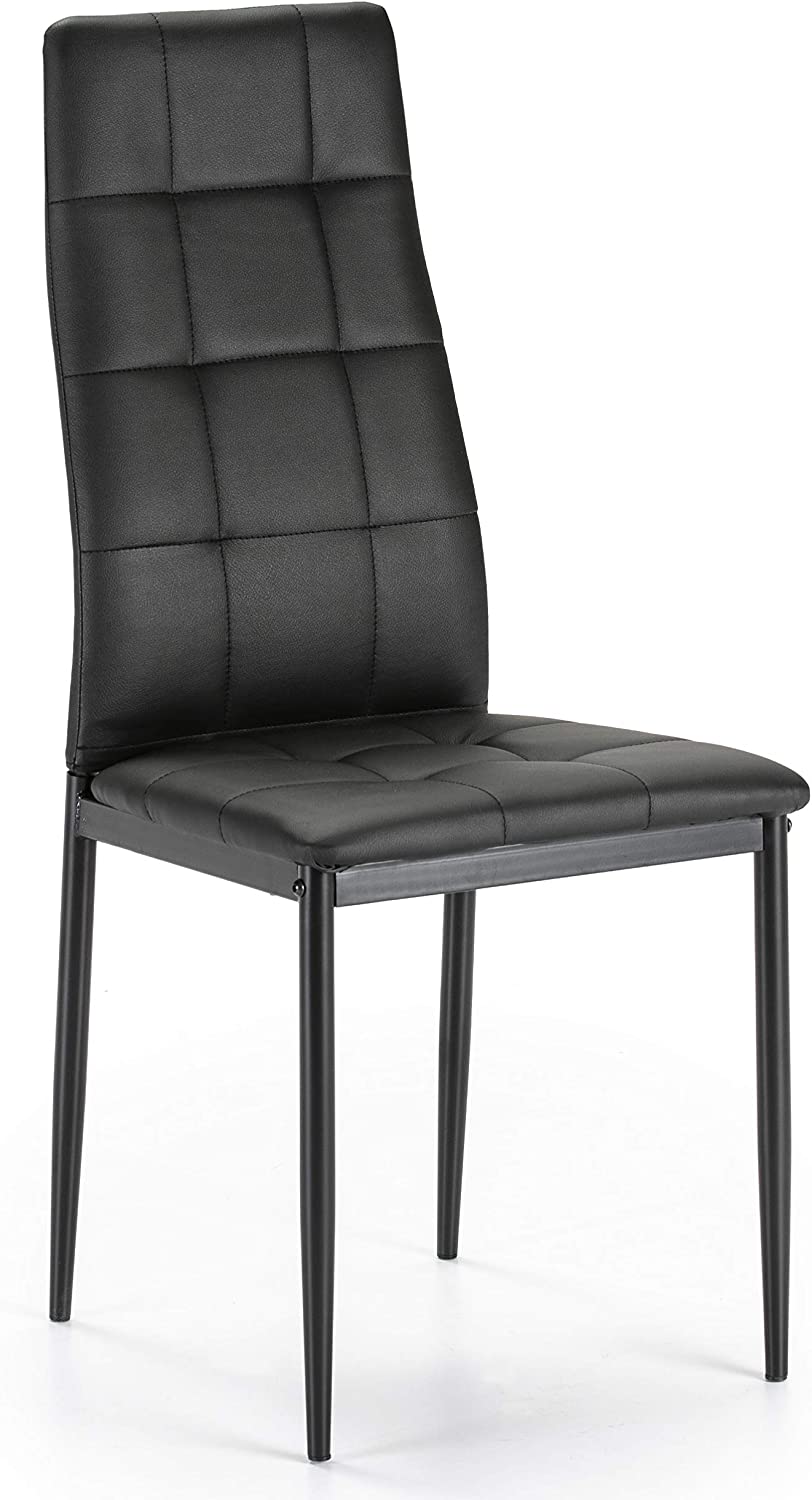 Set di 4 sedie da Pranzo Chelsea rivestite in Tela Nera, Certificazione SGS, 42 cm (Larghezza) x 51 cm (profonditá) x 97 cm (Altezza)
