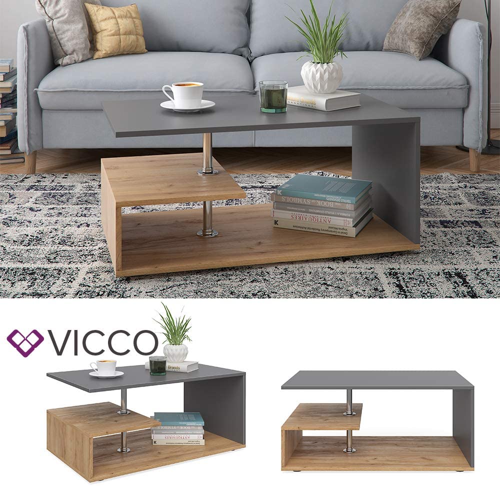 Colore marrone e antracite - Forma Rettangolare - Marchio Vicco -Stile Moderno - La superficie di Guillermo è molto resistente ai graffi ed è facile da pulire, grazie al rivestimento in resina melamminica. Il pratico ripiano d’appoggio offre abbastanza spazio per tutti i vostri accessori. Misure complessive: 41 x 91 x 52,6 cm (AxLxP) - La confezione contiene un tavolino da salotto e le istruzioni di montaggio illustrate.