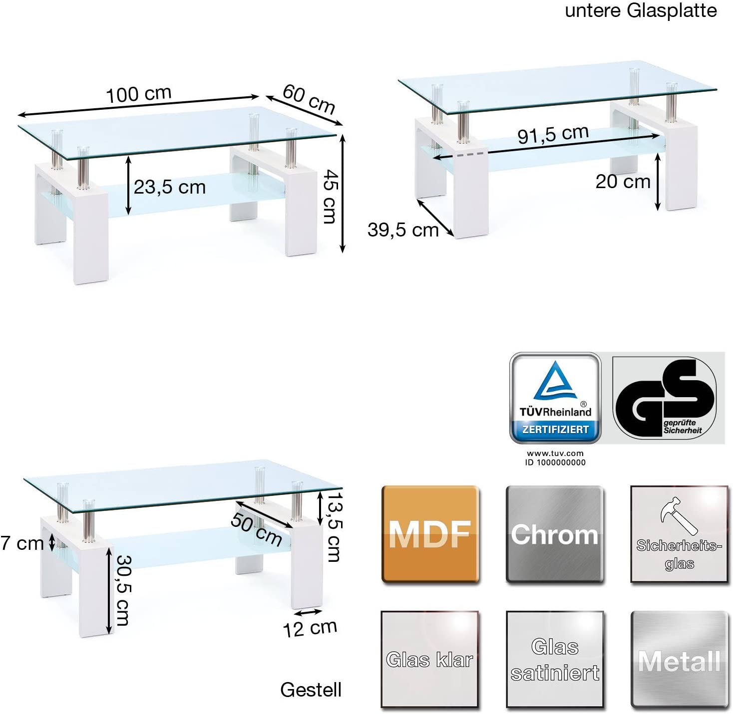 Dimensioni 45P x 100l x 60H cm - allungabile - Questo articolo viene spedito in 2 scatole. Laccato - Doppio vetro temperato e metallo cromato; articolo in kit da montare facilmente.
