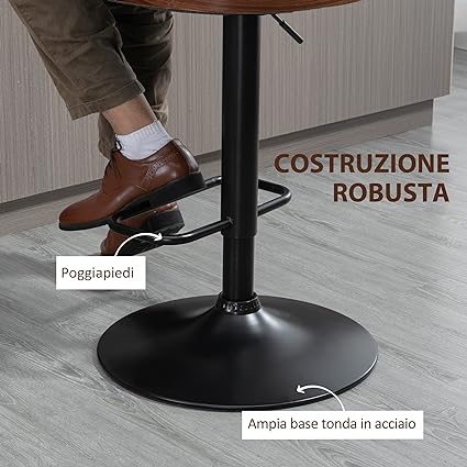 2 PEZZI: Questi sgabelli girevoli sono caratterizzati da uno stile moderno ed elegante, con schienale imbottito che può unirsi perfettamente a ogni ambiente. Il set di due sgabelli evita i problemi di abbinamento. ALTEZZA REGOLABILE: Cambia facilmente dall'altezza da bancone (64 cm) all'altezza da bar (85.5 cm) a tuo piacimento grazie alle sedute regolabili di questi sgabelli da cucina. GIREVOLI: Gli sgabelli da bar sono girevoli a 360° per offrirti il massimo della comodità e poter conversare con chiunque senza il minimo problema. ROBUSTI E STABILI: L'ampia base rotonda in acciaio degli sgabelli moderni garantisce la giusta stabilità. La struttura interna in legno di pioppo è inoltre in grado di sostenere la morbida imbottitura. DIMENSIONI: Dimensioni complessive: 47.5L x 50P x 93.5-116A cm. Adatto a tavoli da bar di altezza compresa tra 89 e 109 cm. Montaggio richiesto.