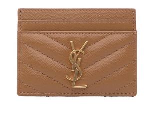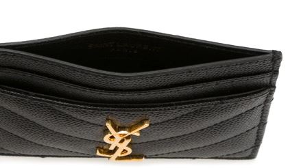 Porta carte 'Monogram' in pelle di vitello matelassé, di colore nero di Saint Laurent con placca logo frontale, componenti metalliche color oro, scomparti multipli portacarte. Crosta 100%