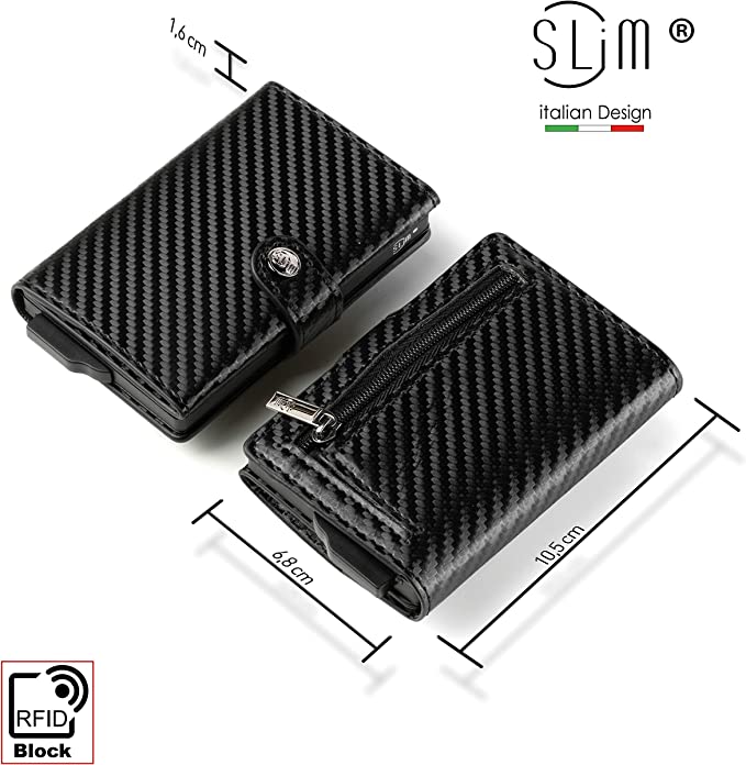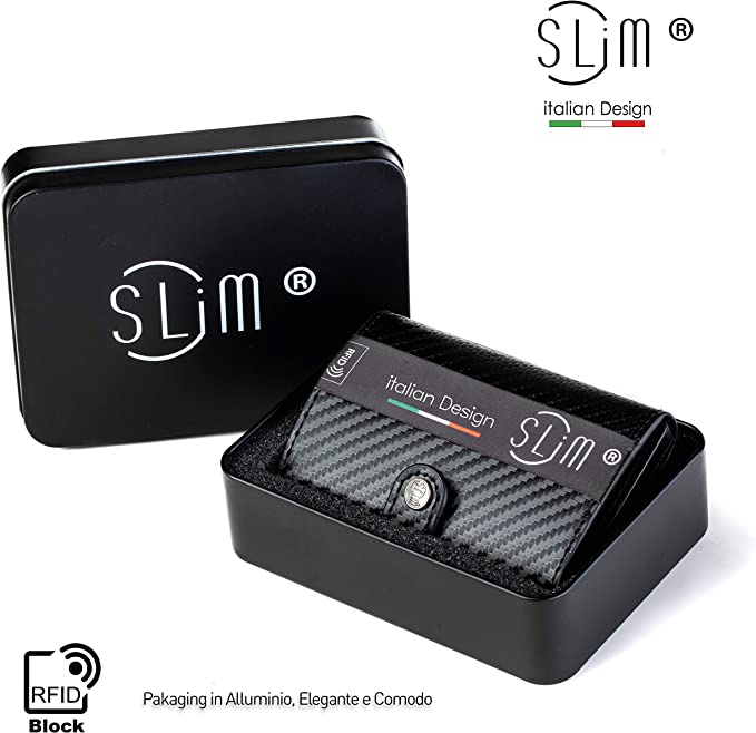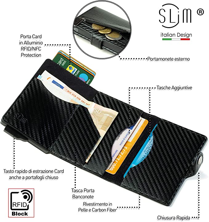 Porta Carte di Credito Schermato - Portafoglio Uomo Rfid - Anticlonazione - Colore Carbon